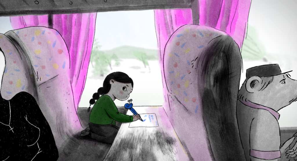 In the 1990s, eight-year-old Agata leaves Poland and moves to Belgium, entering a completely foreign and unfamiliar world. The bus journey alongside other migrants proves to be full of challenges. Noise, crowds, and a sense of otherness awaken in the girl a longing for what is familiar and safe. Migration, seen from a child’s perspective, becomes a story about growing up, shaping identity, and searching for one’s place in a new world. This moving, delicately emotional animated film highlights the strength of a child’s imagination and spirit in coping with the difficulties of migration.